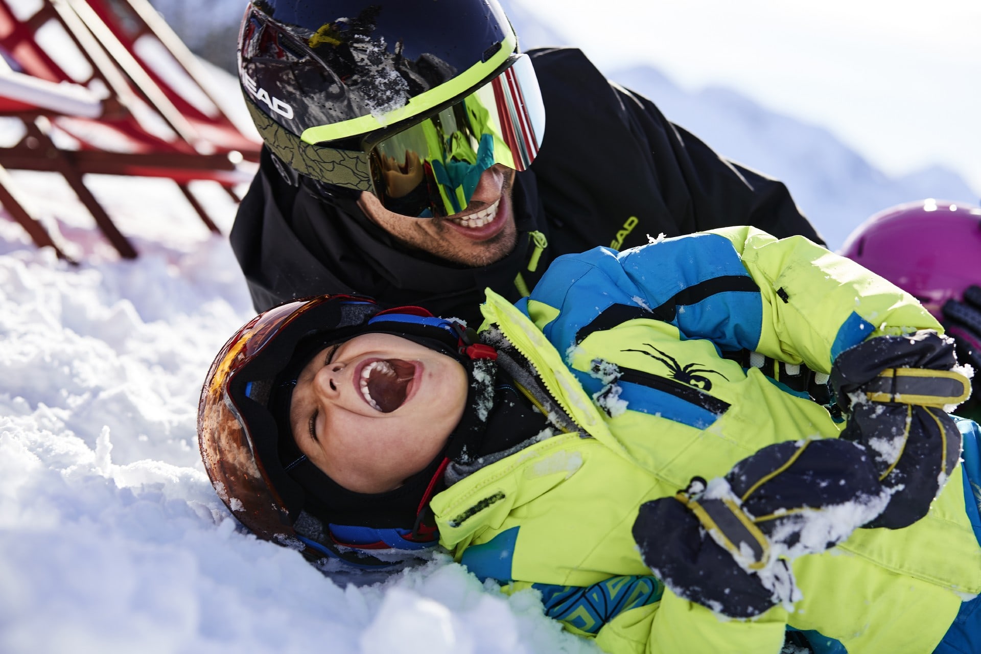 Die Kinder-Skipiste liegt unmittelbar in der Nähe der großen Gipfelstürmer. Da bleibt auch neben dem gemeinsamen Mittagessen noch Zeit für eine kleine Familien-Schneeballschlacht.