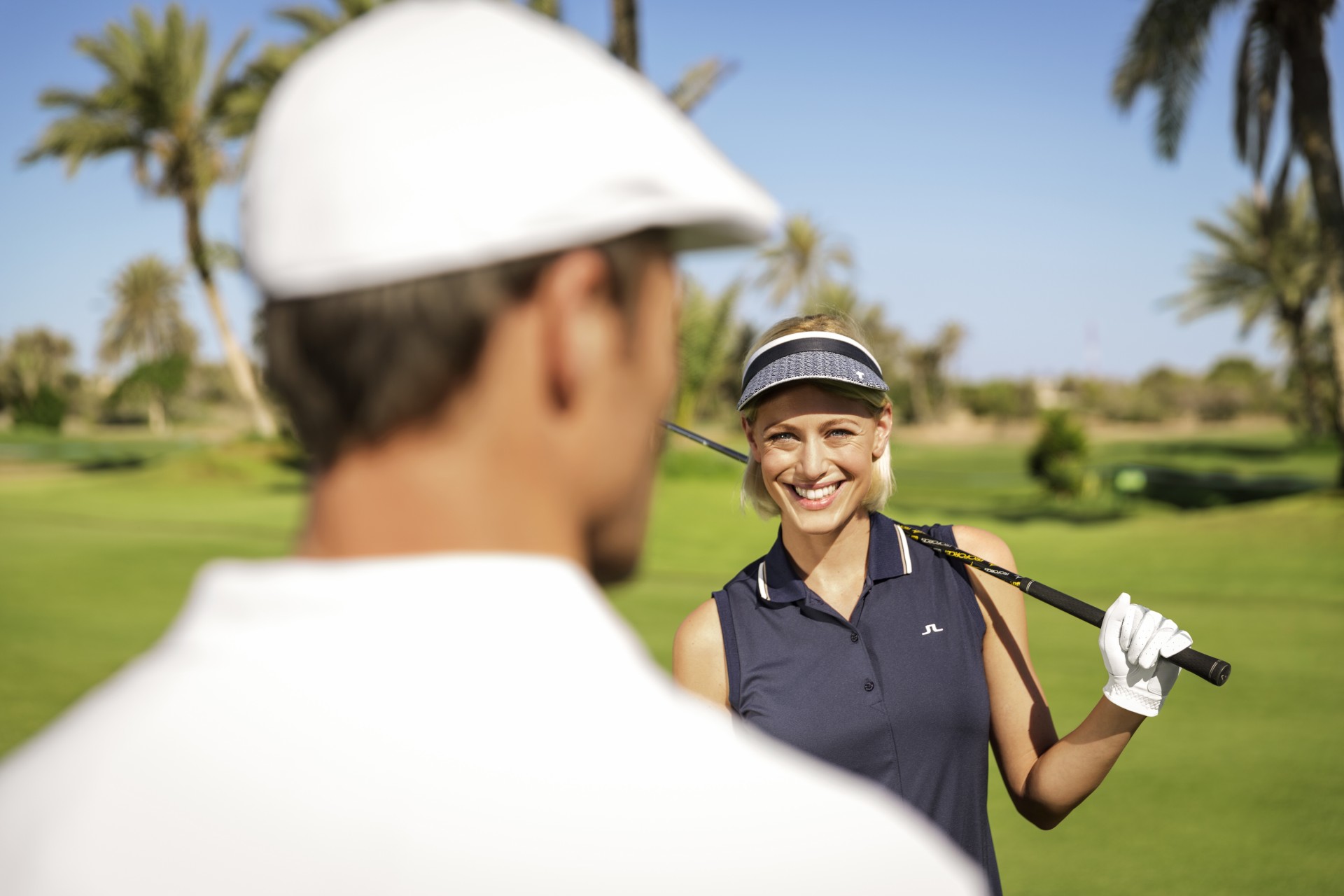 Die Füße etwa schulterbreit aufstellen, mit den Zehen leicht nach außen gerichtet und das Gewicht gleichmäßig verteilen. Eure Füße stehen idealerweiße parallel zum Ziel und passen sich je nach Schlagart an. Experimente – auch gemeinsam mit unserem Golf-Staff – sind strengstens erwünscht.